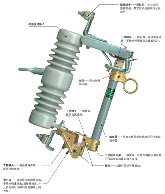(5) 熔管的長度應調整適中,要求合閘后鴨嘴舌頭能扣住觸頭長度的三分之二以上,以免在運行中發生自行跌落的誤動作,熔管亦不可頂死鴨嘴,以防止熔體熔斷后熔管不能及時跌落。