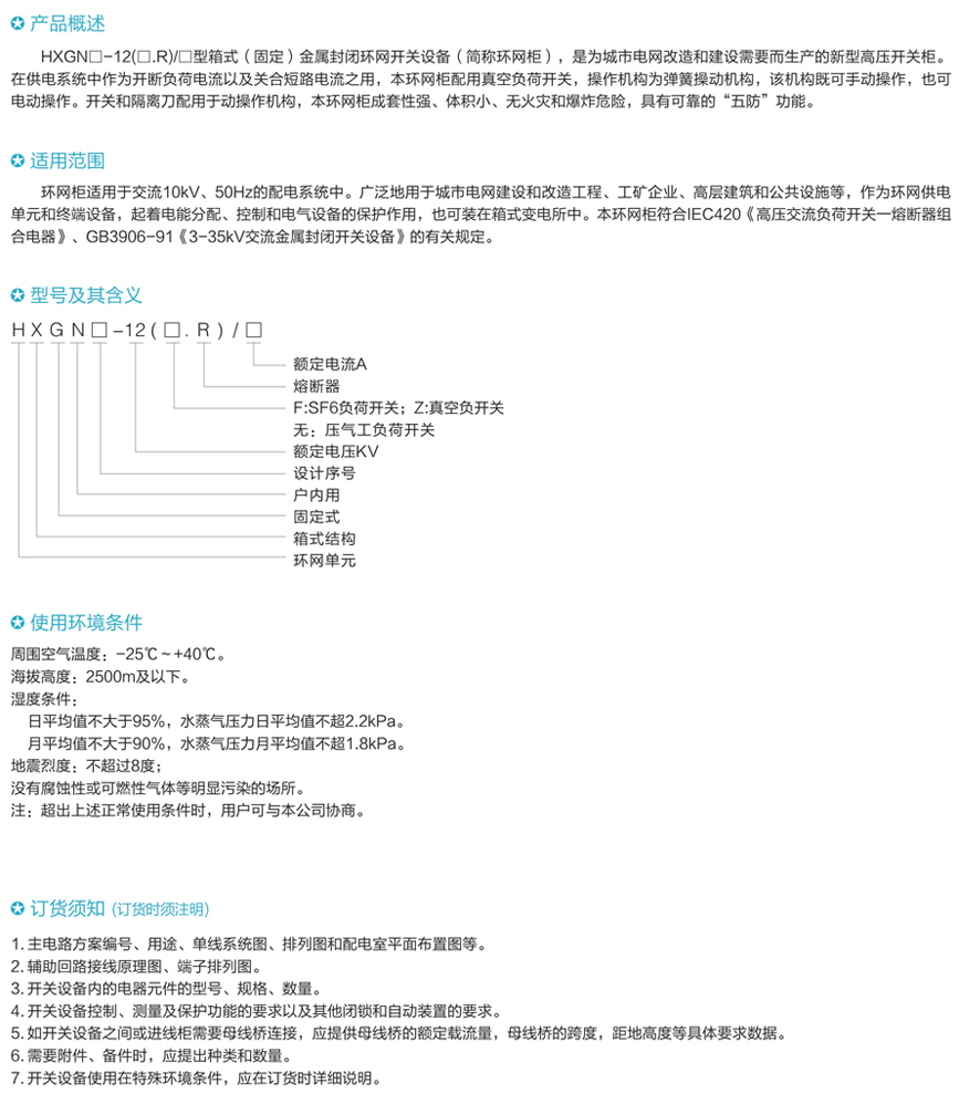 HXGN口-12(口.R)/口型箱式(固定)金屬封裝環網開關設備