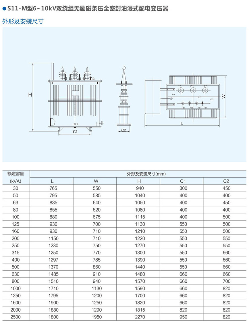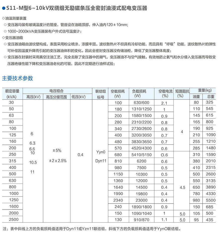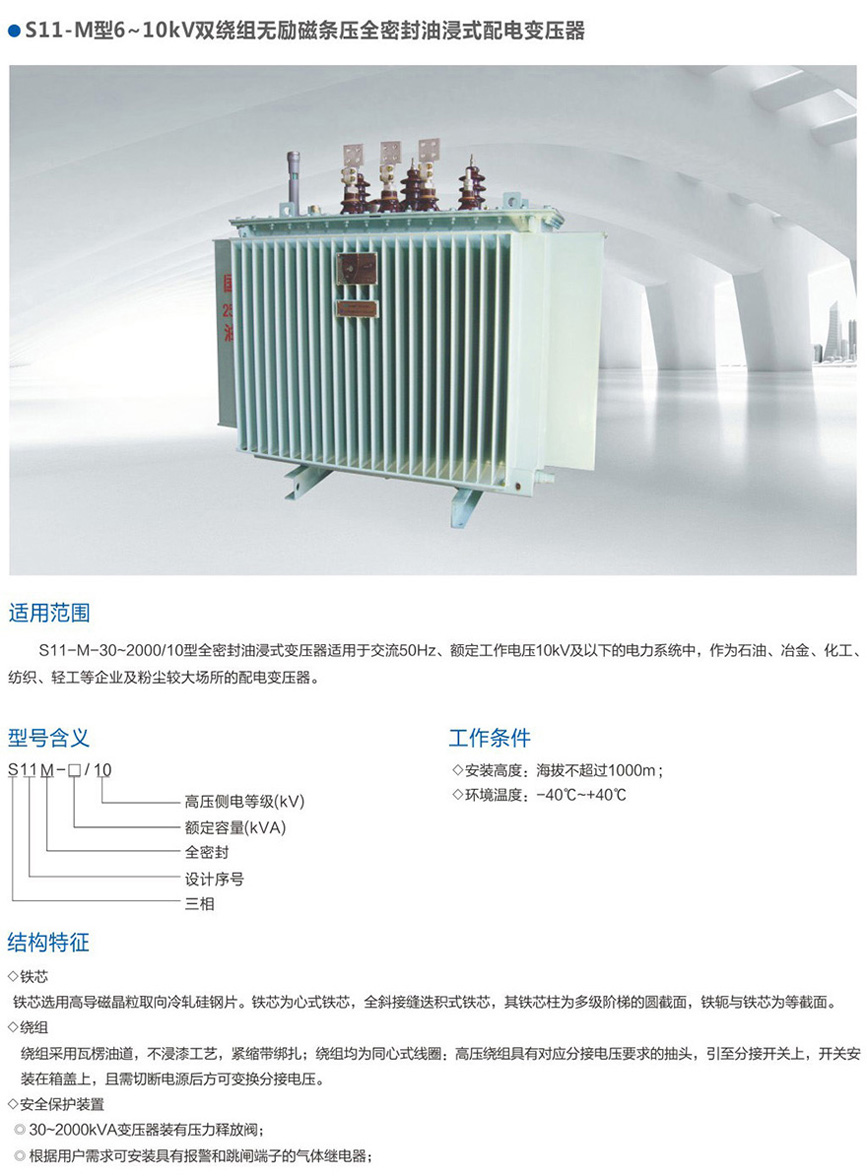 S11 M6~10kV雙繞組無勵磁油浸式變壓器