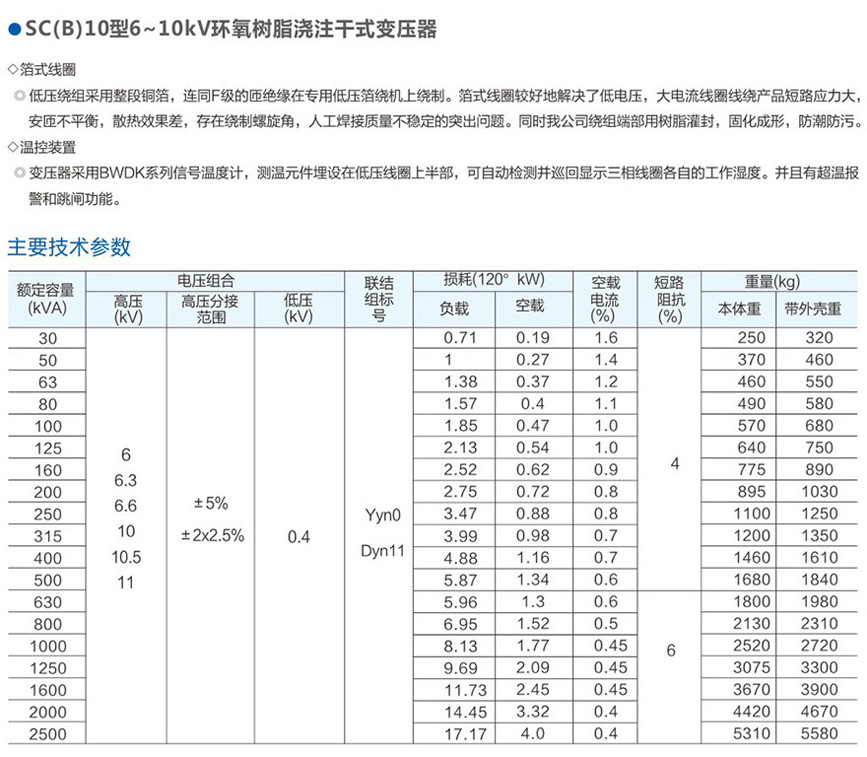 SC(B)10型6~10kV環氧樹脂澆注干式變壓器